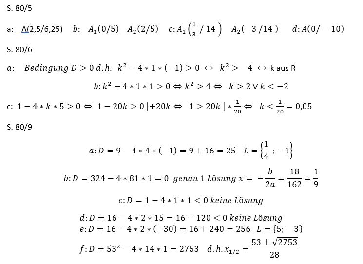 Mitternachtsformel, Diskriminante, quadr. Ungleichungen, Bruchgleichungen