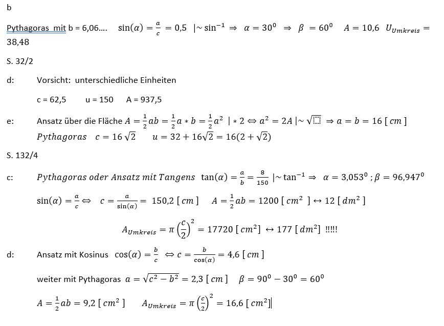 Rechtwinklige Dreiecke: Pythagoras, Winkelfunktionen, TR