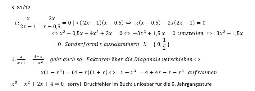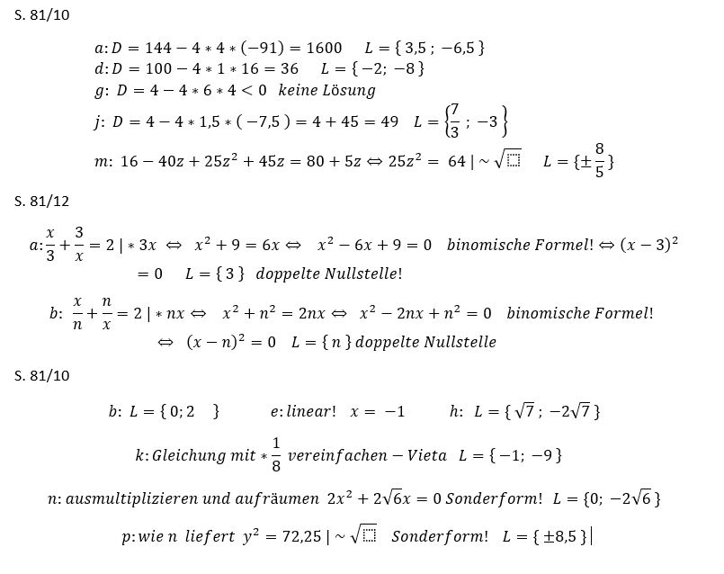 Mitternachtsformel, Diskriminante, quadr. Ungleichungen, Bruchgleichungen