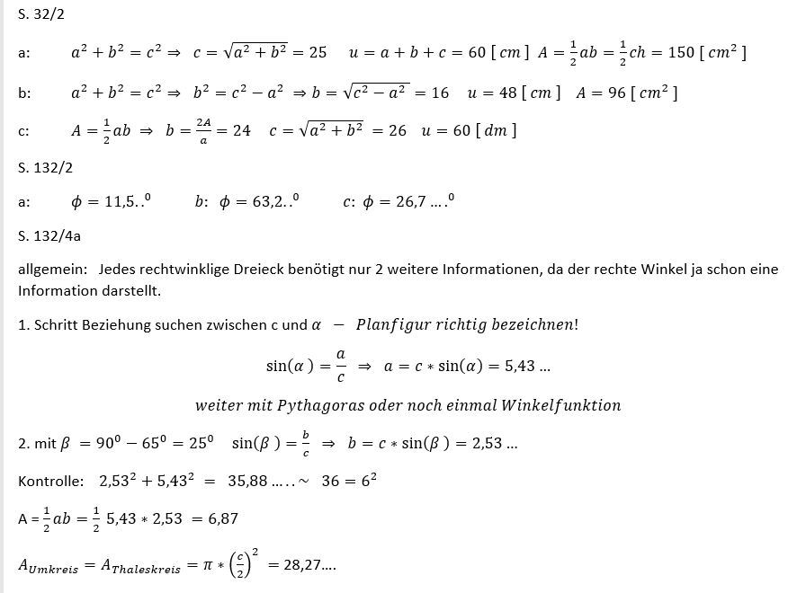 Rechtwinklige Dreiecke: Pythagoras, Winkelfunktionen, TR